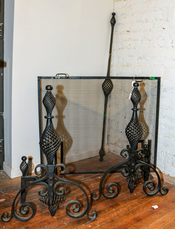A Pair of Wrought Iron Fireplace Andirons