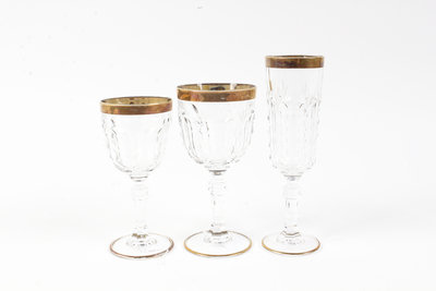 A Collection of Gilt and Etched Stemware