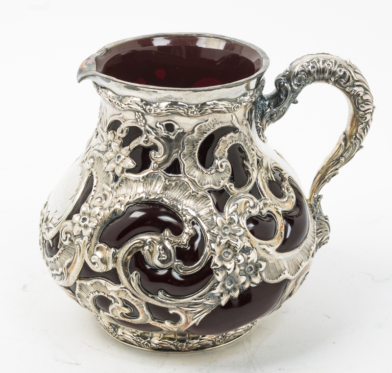 the silver liner worked with openwork floral, foliate and volute decoration throughout.