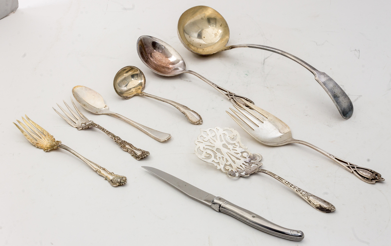 A Group of Silver and Silver-Plate Flatware Articles
