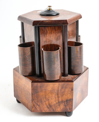 of hexagonal form, playing the melody "O Mein Papa, with Befag Swiss Made label to the underside.