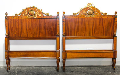 A Pair of Italian Painted and Parcel Gilt Walnut Twin Beds