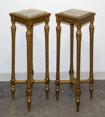 A Pair of Louis XVI Style Giltwood Pedestals