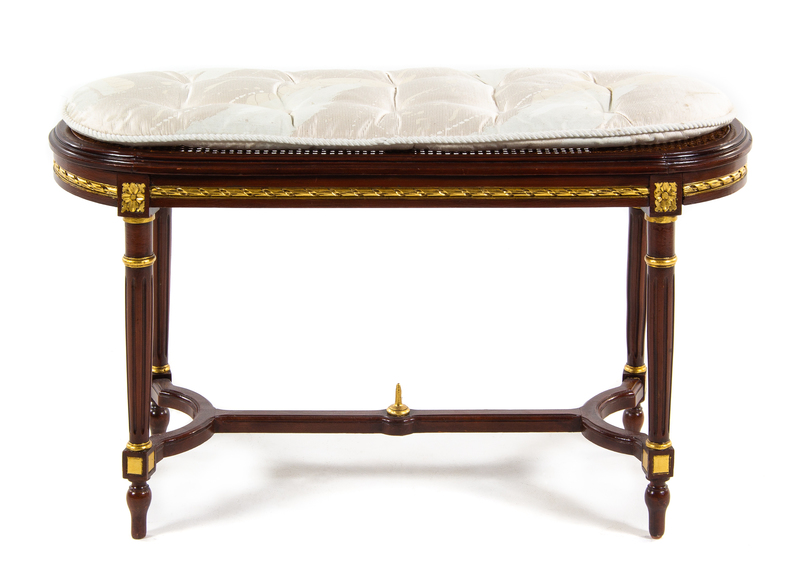 A Louis XVI Style Painted and Parcel Gilt Window Seat
