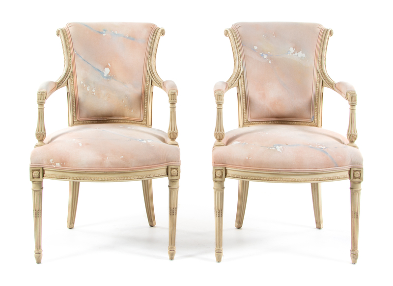 A Pair of Louis XV Style Painted Fauteuil