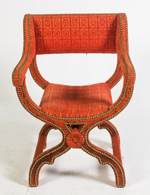 A Nailhead Decorated Upholstered Savonarola Armchair
