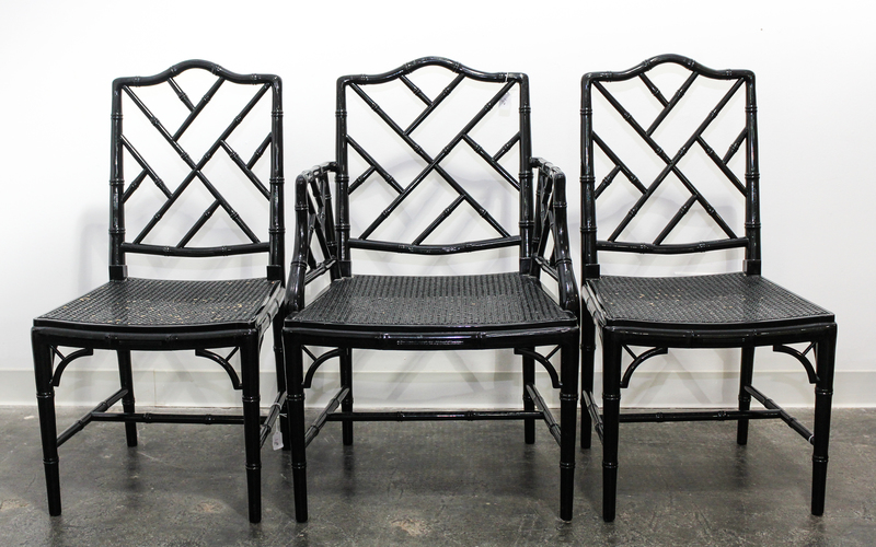 A Set of Six Georgian Style Black Lacquered Chairs