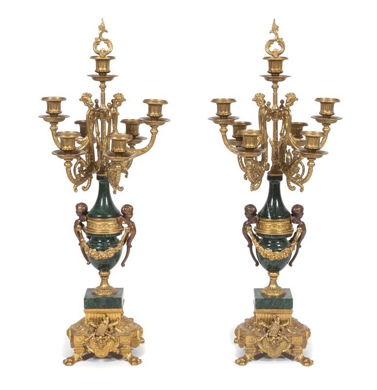 A Pair of Neoclassical Style Gilt Metal Seven-Light Candelabra