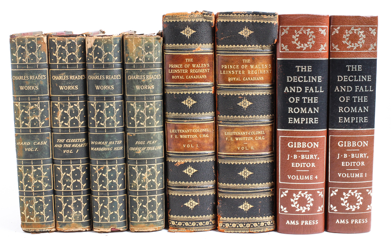comprising The Prince of Wales's Leinster Regiment, volumes 1 and 2, The Decline and Fall of the Roman Empire, volumes 1-7 and Charles Reade's Work, 8 volumes.