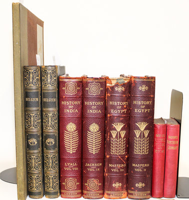 comprising a History of Egypt, 13 vol., History of India, 9 vol., Pugin and C. Heath's Paris and Its Environs Displayed 2 vol., Wright and Buckingham's Belgium; the Rhine 10 vol., Brinkley JAPAN and 8 vol., Baedecker guide books