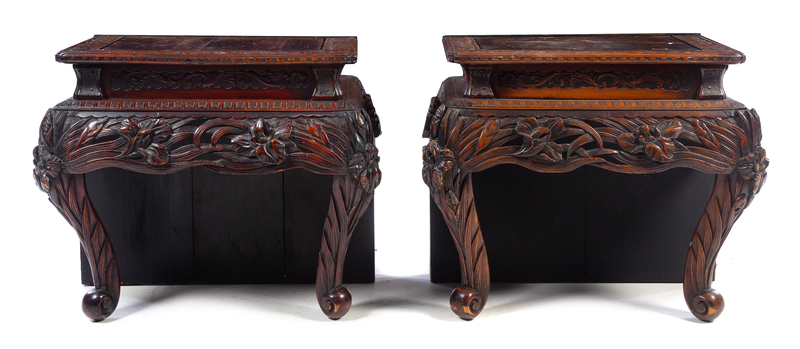 A Chinese Carved Hardwood Table Converted to A Pair of Side Tables