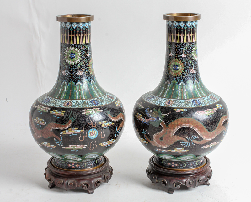 A Pair of Chinese Cloisonne Enamel Vases