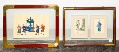 Three Chinese Paintings on Silk Framed as Two