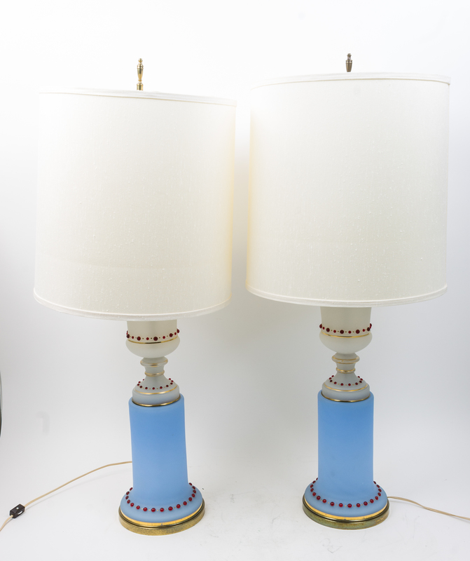 A Pair of Opaline Glass Table Lamps