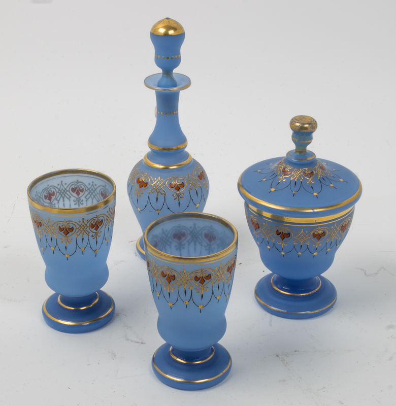 Four Enameled Opaline Glass Table Articles
