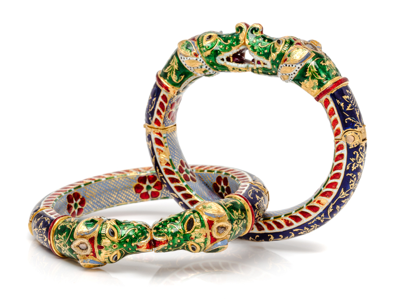 A Pair of High Karat, Diamond, Agate and Polychrome Enamel Bangle Bracelets, Jaipur, 19th Century,