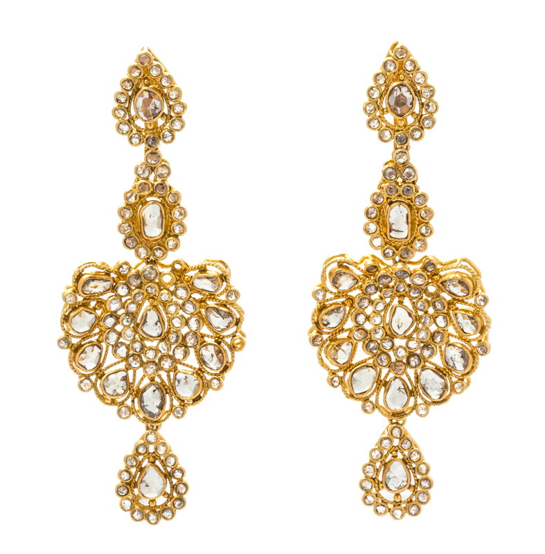 A Pair of 22 Karat Yellow Gold and Diamond Pendant Earrings,