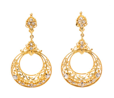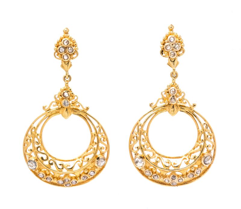 A Pair of 18 Karat Yellow Gold and Diamond Pendant Earrings,
