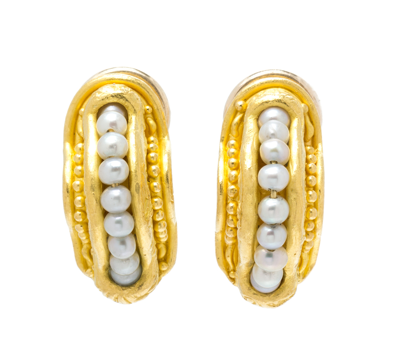 A Pair of 22 Karat Yellow Gold and Cultured Pearl Earclips, Denise Roberge,