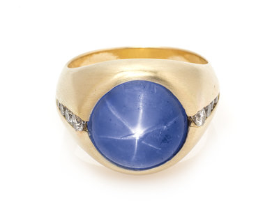 A Yellow Gold, Sri Lanka Star Sapphire and Diamond Ring,