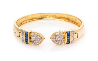 An 18 Karat Yellow Gold, Diamond and Sapphire Cuff Bracelet,