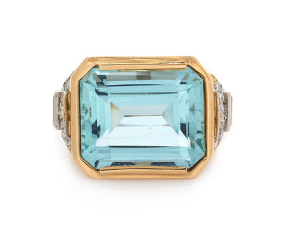 A Yellow Gold, Platinum, Aquamarine, and Diamond Ring,