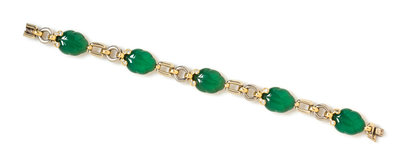 An 18 Karat Bicolor Gold, Green Chalcedony and Diamond Bracelet, Cartier, Circa 1990,
