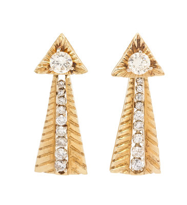 A Pair of Yellow Gold and Diamond Convertible Day/Night Earrings,