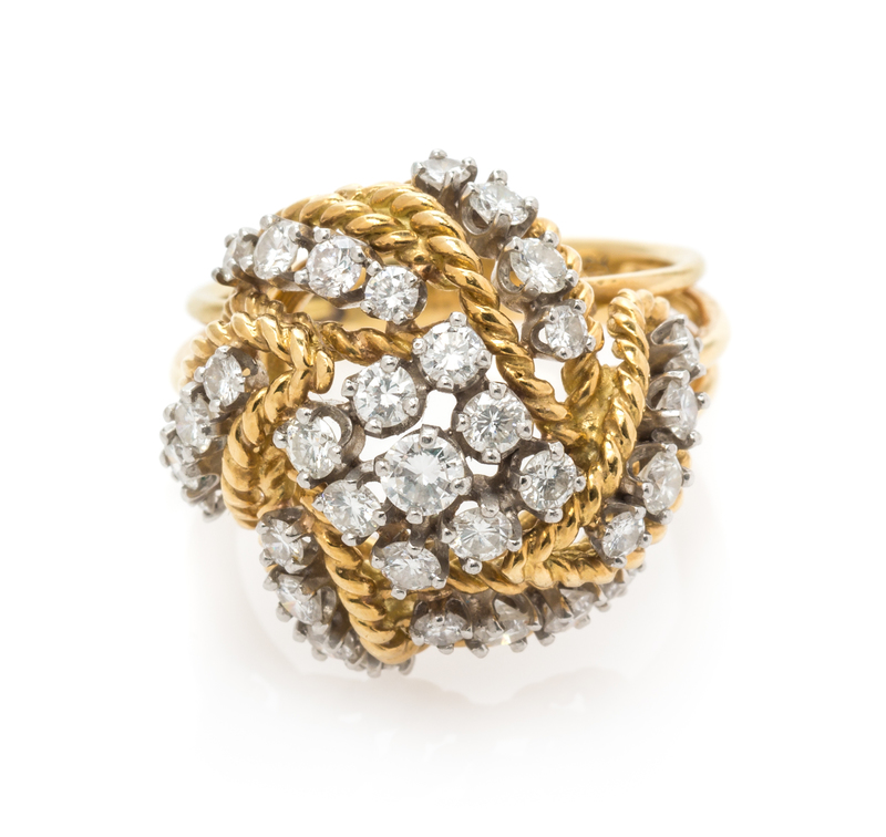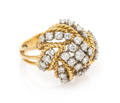 An 18 Karat Yellow Gold, Platinum, and Diamond Bombe Ring,