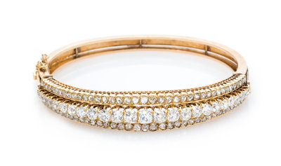 An Antique Rose Gold and Diamond Bangle Bracelet,