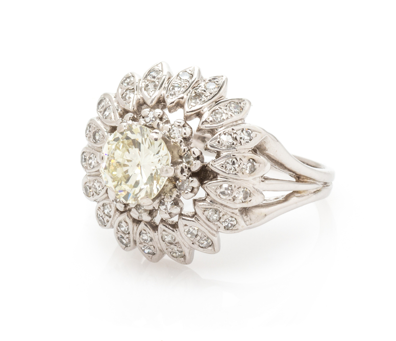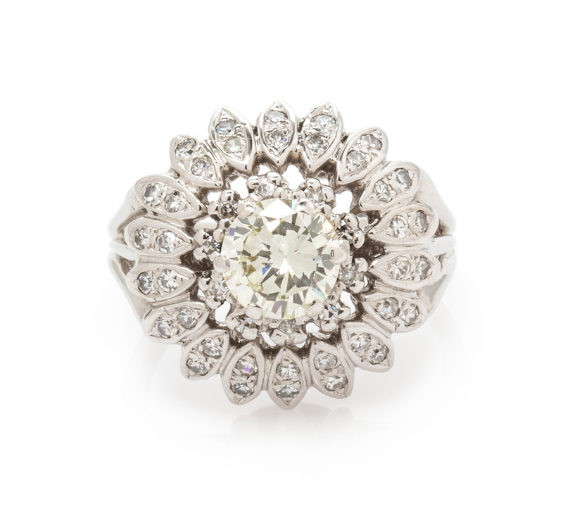 containing one round brilliant cut diamond weighing approximately 1.20 carats and 46 round single cut diamonds weighing approximately 0.45 carat total.