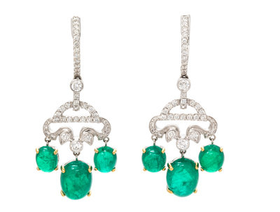 A Pair of 18 Karat Gold, Emerald and Diamond Chandelier Earrings, Seaman Schepps,