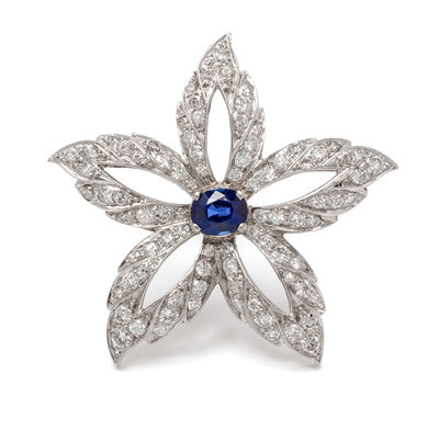 A Platinum, Sapphire, and Diamond Brooch, Lackritz,