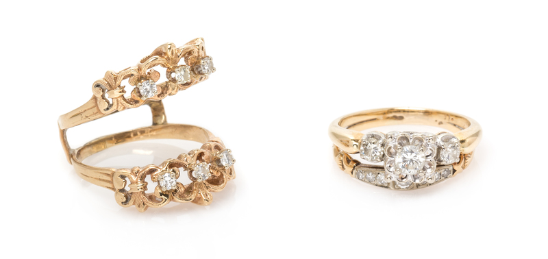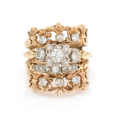 A 14 Karat Bicolor Gold and Diamond Ring Set,