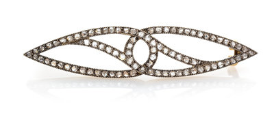 A Belle Epoque Silver Topped 18 Karat Yellow Gold and Diamond Hair Barrette, French,