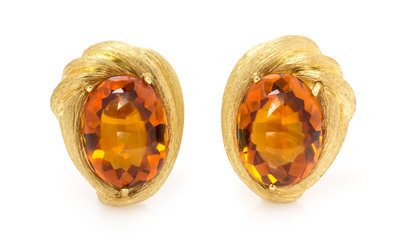 A Pair of 18 Karat Gold and Citrine Earclips, Henry Dunay,