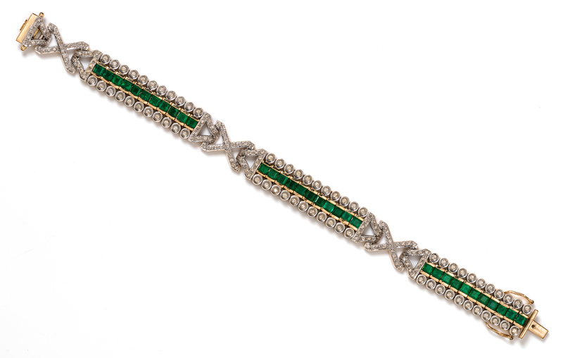 A 14 Karat Bicolor Gold, Emerald and Diamond Bracelet,