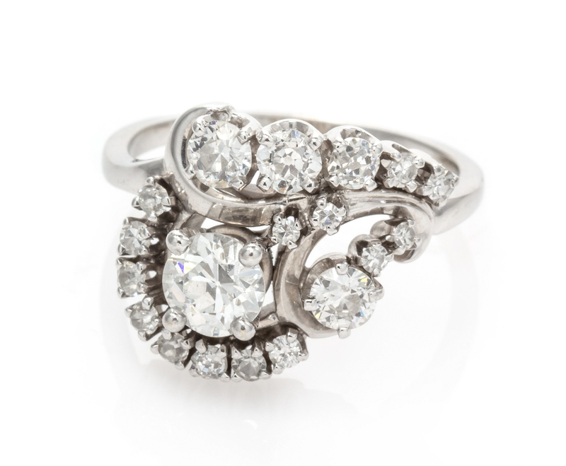 unsigned, containing one old European cut round diamond weighing approximately 0.70 carat and 18 old European, old mine, and single cut diamonds weighing approximately 0.80 carat total.Stamp: 18K.