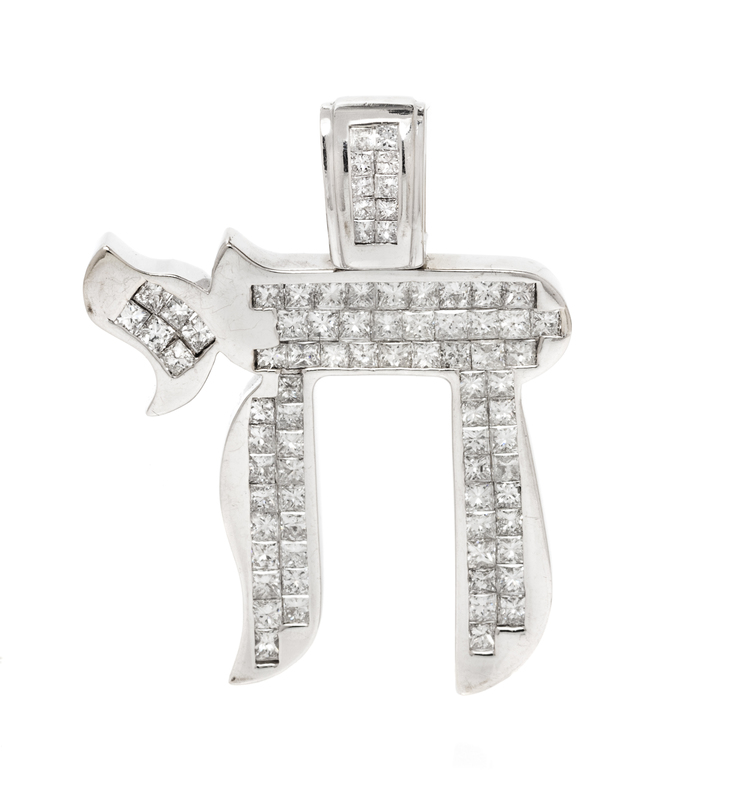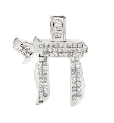 A 14 Karat White Gold and Diamond Chai Pendant,