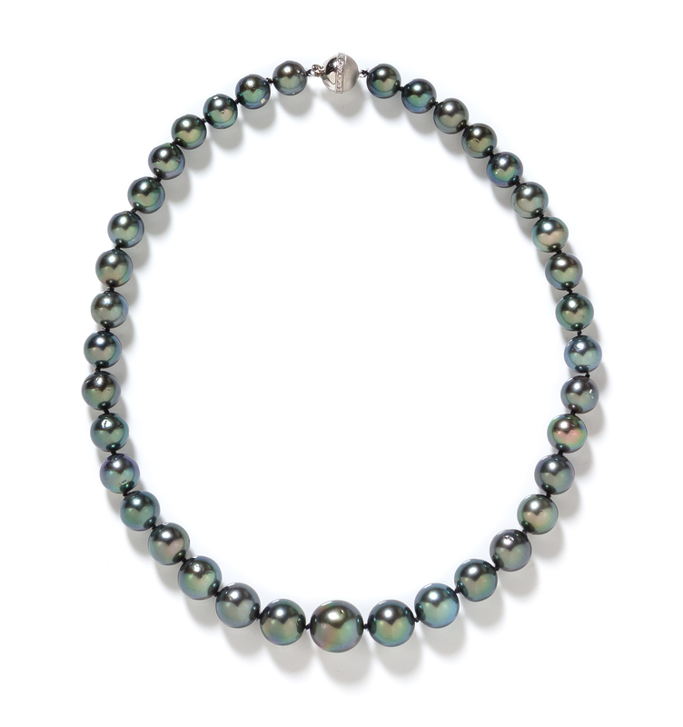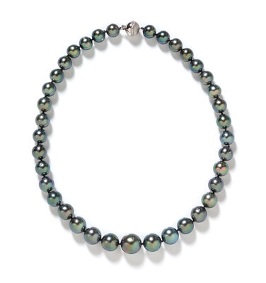A Graduated Single Strand Cultured Tahitian Pearl Necklace,