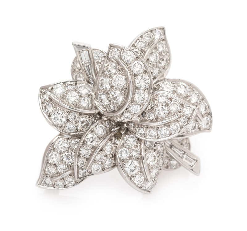 A Platinum and Diamond Leaf Cluster Brooch,