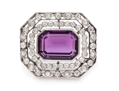 An Art Deco Platinum, Amethyst and Diamond Pendant/Brooch,