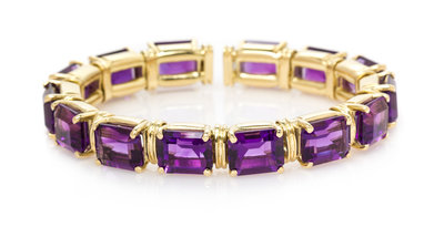 containing 14 octagonal step cut amethysts weighing approximately 43.18 carats total.Stamp: 750.