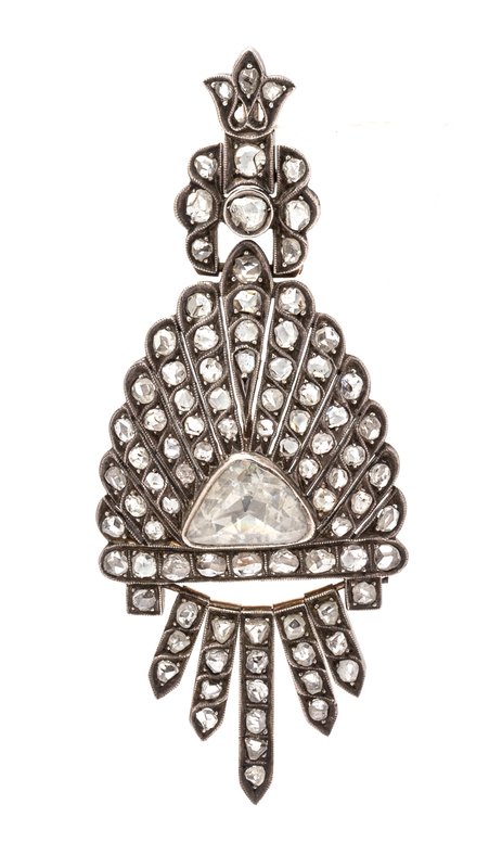 containing one foil backed rose cut diamond measuring approximately 11.40 x 7.81 mm and 90 rose cut diamonds.