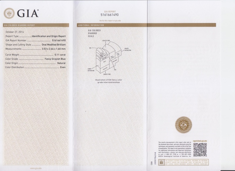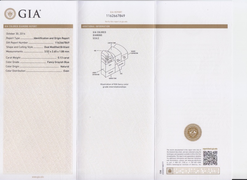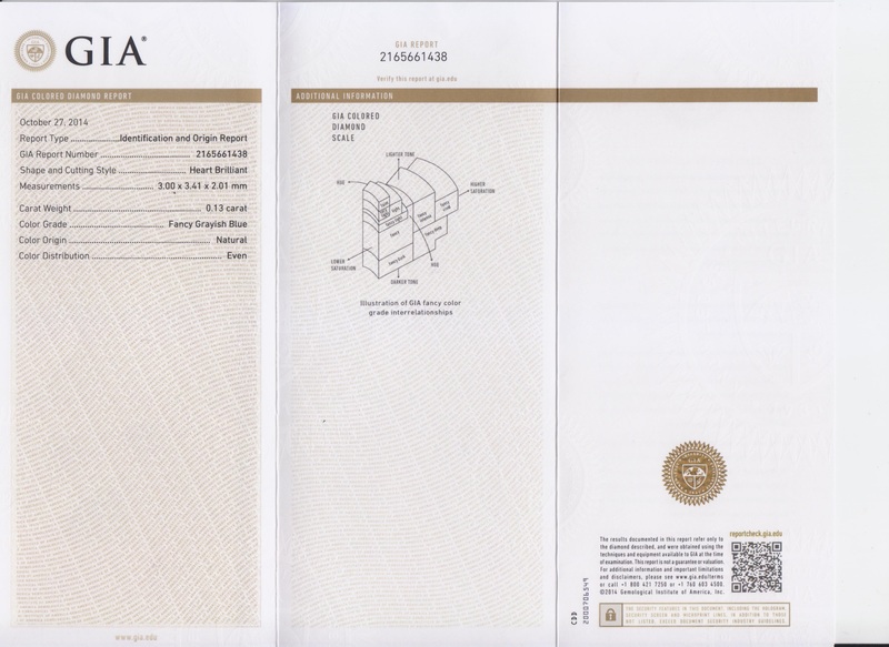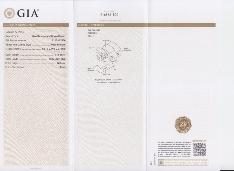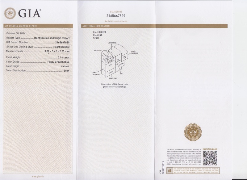 containing one pear shape brilliant cut fancy gray-blue diamond weighing 0.24 carat, two pear shape brilliant cut fancy grayish blue diamonds weighing approximately 0.39 carat total, one pear shape brilliant cut fancy gray-blue diamond weighing approximately 0.16 carat, two heart shape brilliant cut fancy grayish blue diamonds weighing approximately 0.27 carat total, three oval shape brilliant cut fancy grayish blue diamonds weighing 0.42 carat total, one oval shape brilliant cut fancy gray-blue diamond weighing 0.16 carat, four round brilliant cut pink colored diamonds (origin of color not tested) weighing approximately 0.34 carat total, 24 round brilliant cut pink colored (origin of color not tested) weighing approximately 0.12 carat total, and 92 round brilliant cut diamonds weighing approximately 0.46 carat total.Stamp: Pt950.Accompanied by 10 Gemological Institute of America colored diamond grading certificates with colors ranging from fancy grayish blue to fancy gray-blue. Please contact the Jewelry department for details.