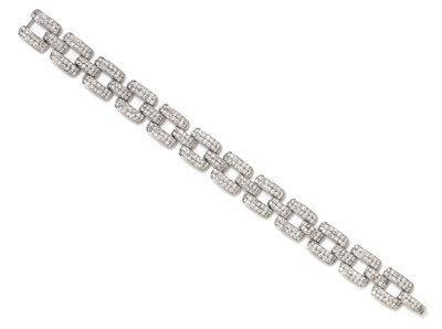 An 18 Karat White Gold and Diamond Link Bracelet,