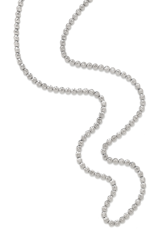 A 14 Karat White Gold and Diamond Longchain Riviere Necklace,