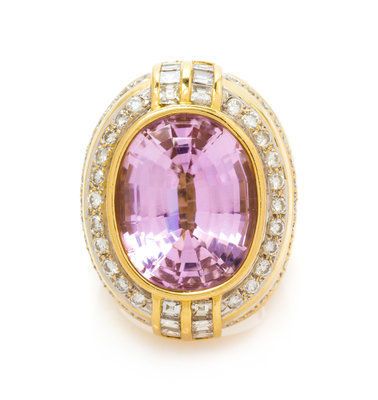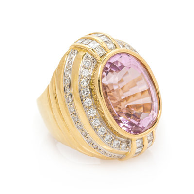 A Yellow Gold, Kunzite and Diamond Ring,