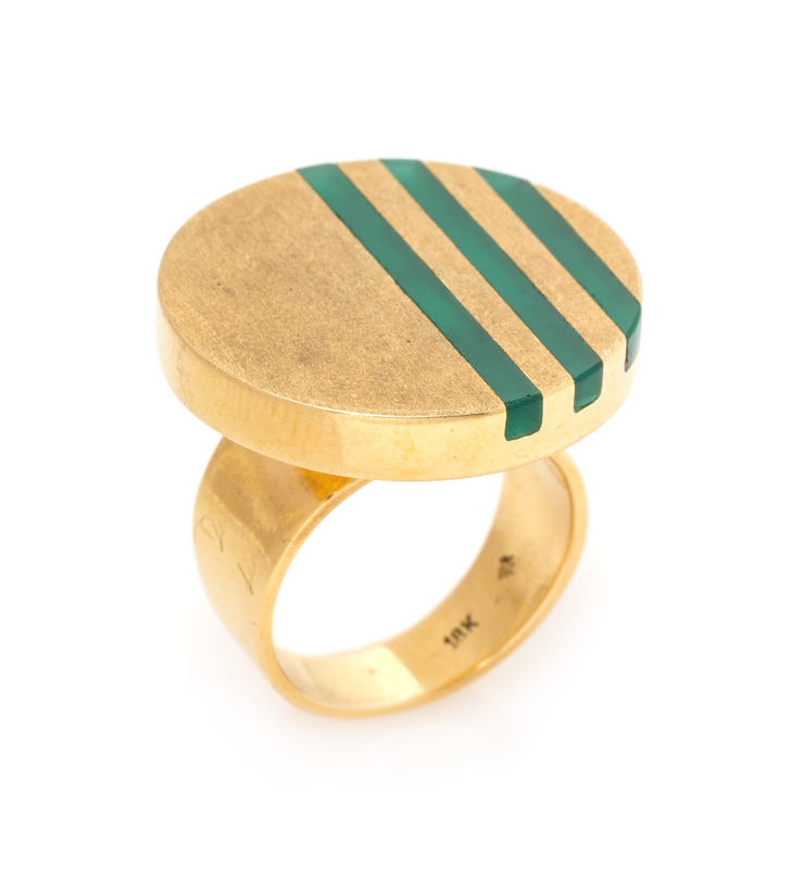 A Modernist 18 Karat Yellow Gold and Green Onyx Ring,
