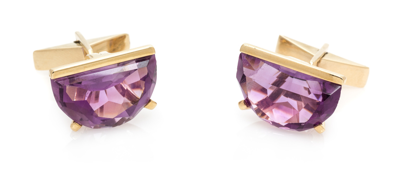 A Pair of 14 Karat Yellow Gold and Amethyst Cufflinks,